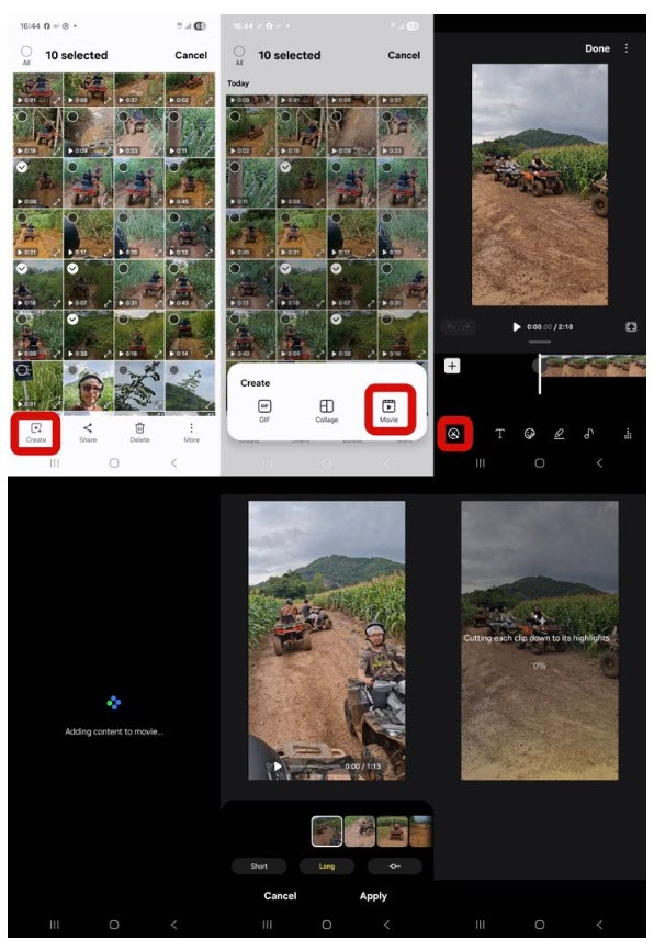 5.AI เริ่มทำงาน: Galaxy AI จะเริ่มวิเคราะห์วิดีโอทั้งหมดและสร้างคลิปไฮไลท์ขึ้นมาให้ 2 เวอร์ชัน คือแบบสั้น (Short) และแบบยาว (Long)