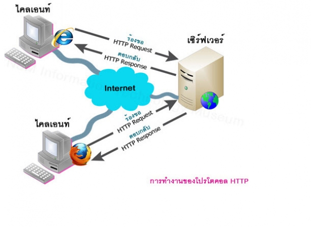 เครื่องไคลแอนท์ติดต่อกับเครื่องเว็บเซิร์ฟเวอร์ โดยปรกติจะใช้โพรโทคอล TCP พอร์ต 80