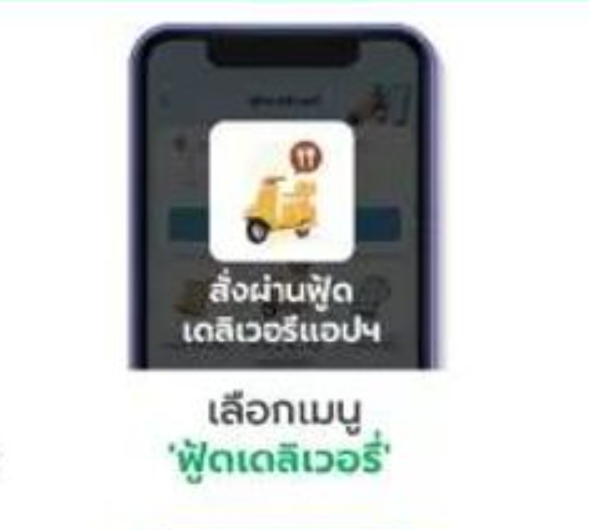 2. เลือก "ฟู้ดเดลิเวอรี่" ซึ่งจะเป็นหน้ารวมบริการ ให้เลือกเมนู "สั่งผ่านฟู้ดเดลิเวอรี่แอป"