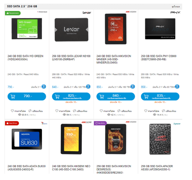 1. ยิ่งได้ความจุเยอะยิ่งมีราคาสูง