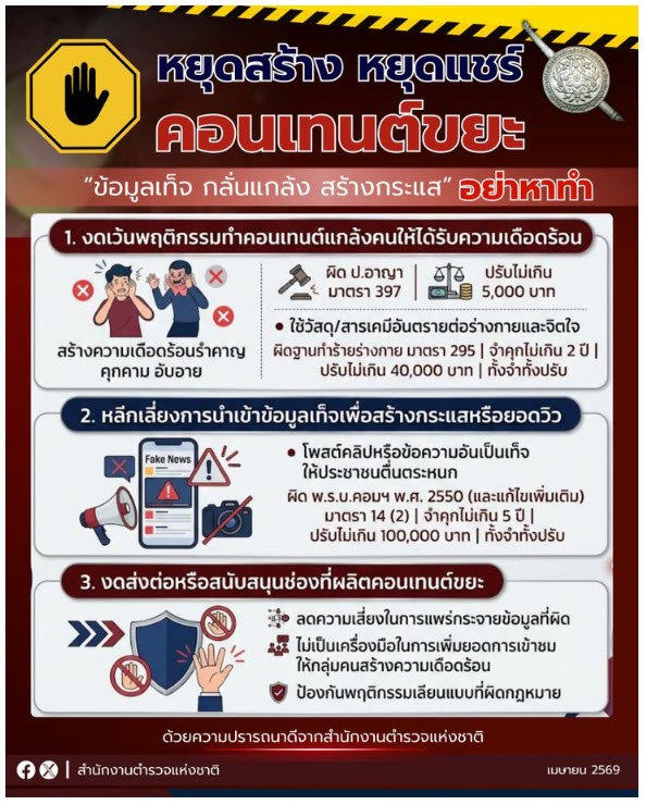 อย่าหาทำ! สร้างหรือแชร์ "คอนเทนต์ขยะ" เสี่ยงคุก ปรับหมดตัว