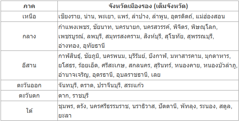 รายชื่อ 55 จังหวัด ที่เข้าข่าย "เมืองรอง"
