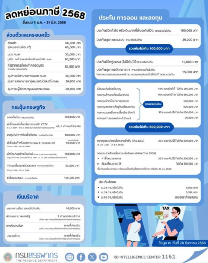 - ระยะเวลาในการยื่นแบบกระดาษภายใน 31 มีนาคม 2569 และ ยื่นภาษีออนไลน์ ได้ถึง 8 เมษายน 2569
