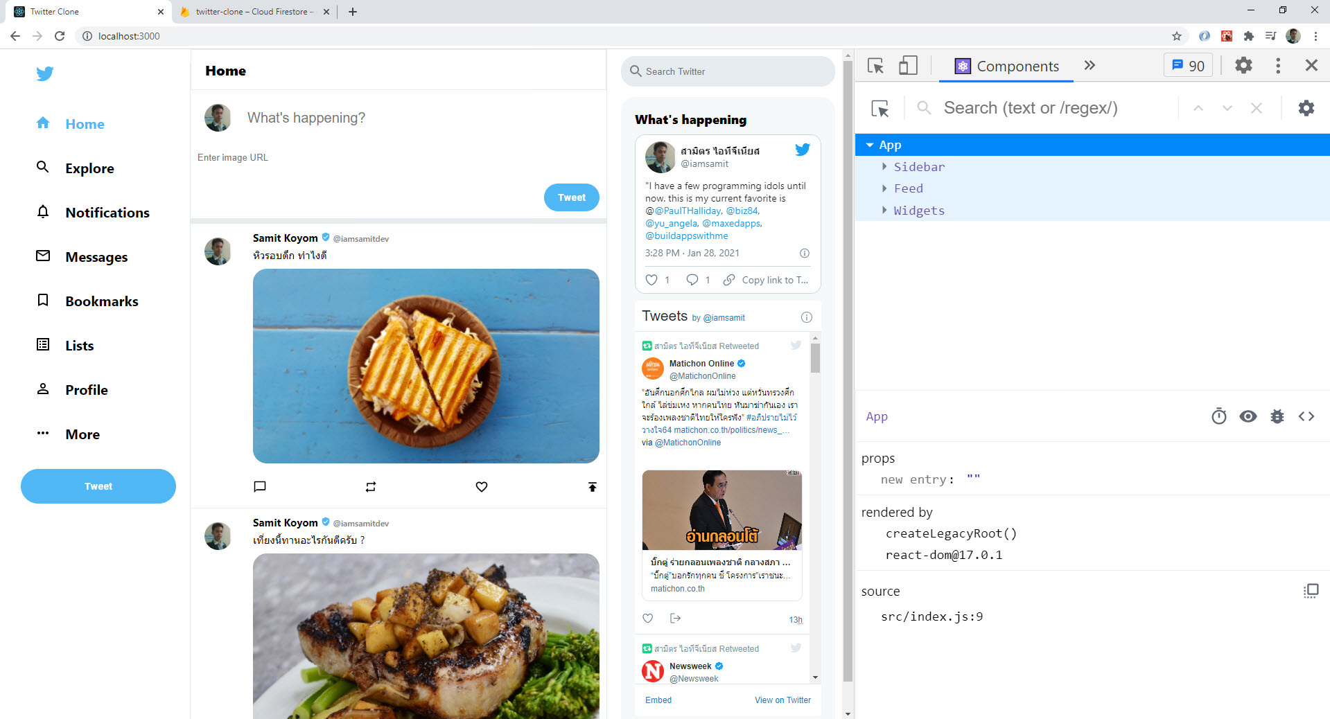 การเขียน React เรายังสามารถแยกองค์ประกอบของหน้าเว็บเรา ออกเป็นส่วนๆ เรียกว่าเป็น component แล้วนำมาประกอบกันเป็นหน้าเว็บได้ ซึ่งทำให้เราสามารถ นำ component ของเราไปใช้ซ้ำที่อื่นได้ ไม่ต้องเสียเวลาเขียนใหม่
