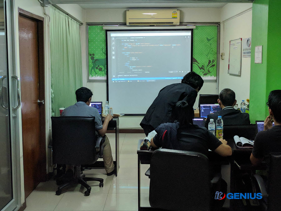 เป็นการจัดอบรมหลักสูตร การพัฒนาเว็บแอพพลิเคชั่นด้วย framework ยอดนิยมอย่าง Angular JS โดยครอบคลุมเนื้อหาตั้งแต่พื้นฐานถึงขั้นสูงประยุกต์ใช้งาน จัดอบรมที่สถาบันไอทีจีเนียส กรุงเทพมหานคร ระยะเวลาอบรม 3 วัน ดำเนินการสอนโดย อาจารย์ นิติพันธ์ ป้อมพันธ์ จากไอที