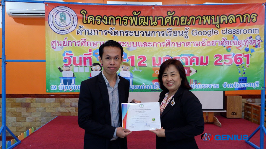 เป็นการจัดอบรมนอกสถานที่ให้กับ ศูนย์การเรียนรู้ตามอัธยาศัย (กศน.) เขตทุ่งครุ ในหลักสูตรการใช้งาน Google Classroom สำหรับการจัดการเรียนการสอนของครูและนักเรียยน โดยมีเจ้าหน้าที่เข้าอบรมกว่า 15 ท่าน ดำเนินการจัดอบรมโดย อาจารย์สามิตร โกยม จากไอทีจีเนียส เอ็นจ